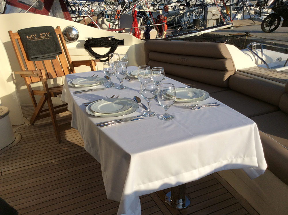 Jacht motorowy Aicon 56 My Joy to jednostka o długości 17.45m z 2007 roku. Jacht posiada 3 kabiny, przeznaczony jest dla 6 osób. Czarter jachtu z bazy Athens.
